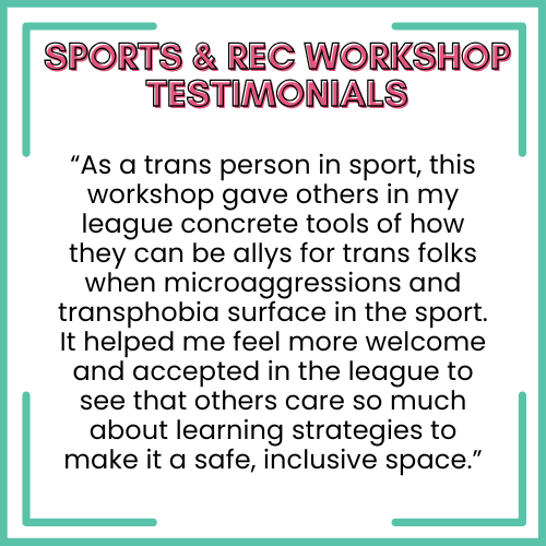 From recreational sports teams to professional teams, our workshops, consultation and partnership help bring inclusivity to community spaces!