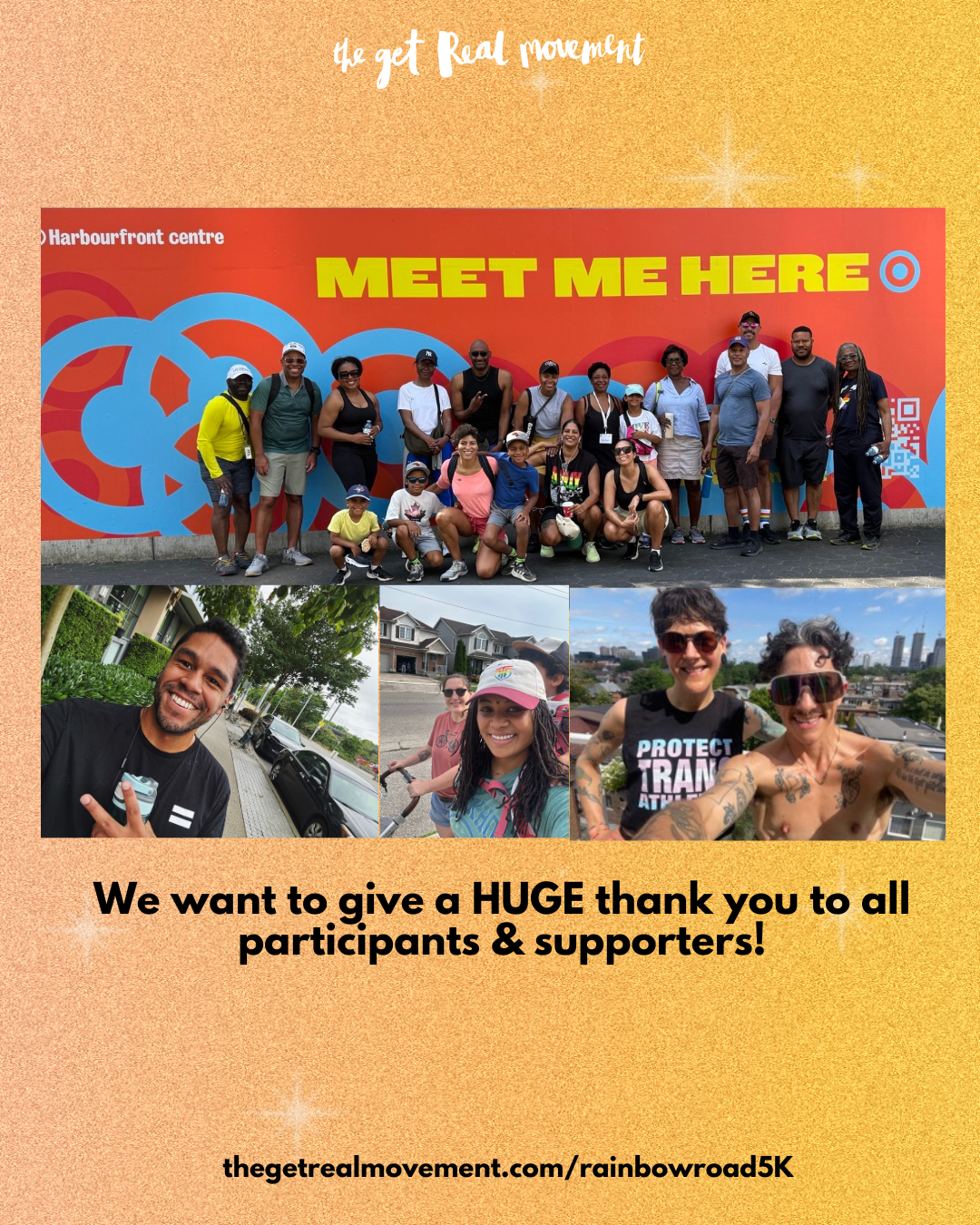 You can connect with other participants (around the world!) by sharing a photo of yourself with the hashtag #GetREAL5K #RainbowRoad5K and tag us @getrealmovement on Instagram!